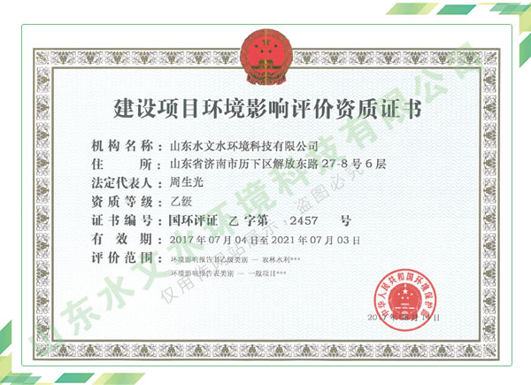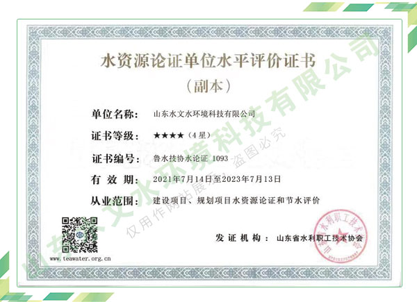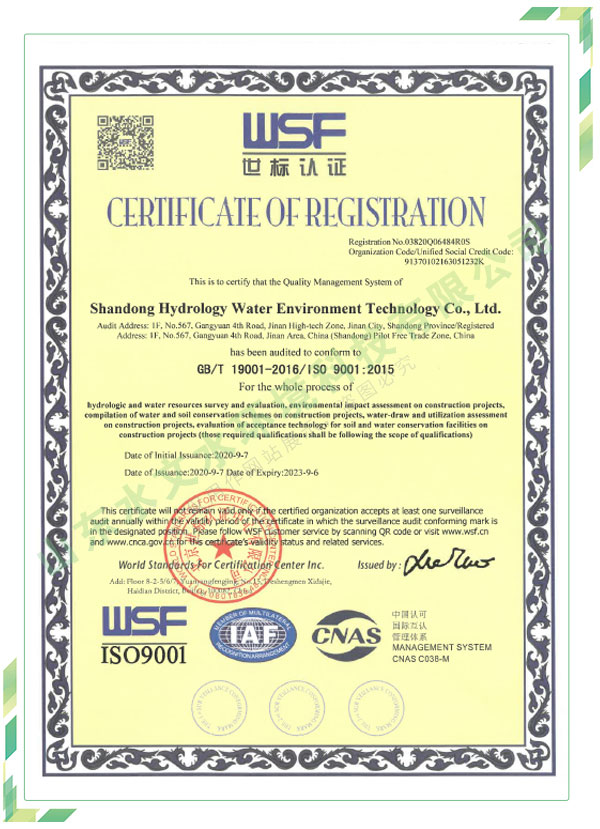 公司擁有水利工程設(shè)計、水土保持、水文水資源調(diào)查評價、水資源論證、建設(shè)項目環(huán)境影響評價、市政公用工程施工總承包、水利水電工程施工總承包、電子與智能化工程專業(yè)承包等資質(zhì),2017年通過質(zhì)量管理體系、環(huán)境管理體系、職業(yè)健康安全管理體系認(rèn)證;2020年被評為國家級高新技術(shù)企業(yè),同年被中國水利企業(yè)協(xié)會推薦為第一批“合同節(jié)水服務(wù)企業(yè)”;2021年被山東省、濟(jì)南市評為 “專精特新”中小企業(yè)。業(yè)務(wù)范圍涉及水利工程設(shè)計;節(jié)水設(shè)計、改造、水平衡測試;山洪災(zāi)害調(diào)查;城市水資源調(diào)查評價;建設(shè)項目水土保持方案編制、監(jiān)測、驗收、水土保持規(guī)劃;水安全保障規(guī)劃、建設(shè)項目水資源論證、規(guī)劃水資源論證;建設(shè)項目環(huán)境影響評價;入河排污口論證;防洪影響評價;市政公用工程施工、水利水電工程施工、電子與智能化工程施工等。